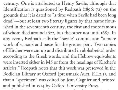 The other thing that caught my attention was Redpath’s skepticism that Saville actually produced this cut-and-paste job (and the question of multiple Savilles). Then there is the parallel issue of Jean Gagnier and the “specimen” printed by OUP years later. How did it all fit together? Well, that’s what my article is about and it was great fun to write.