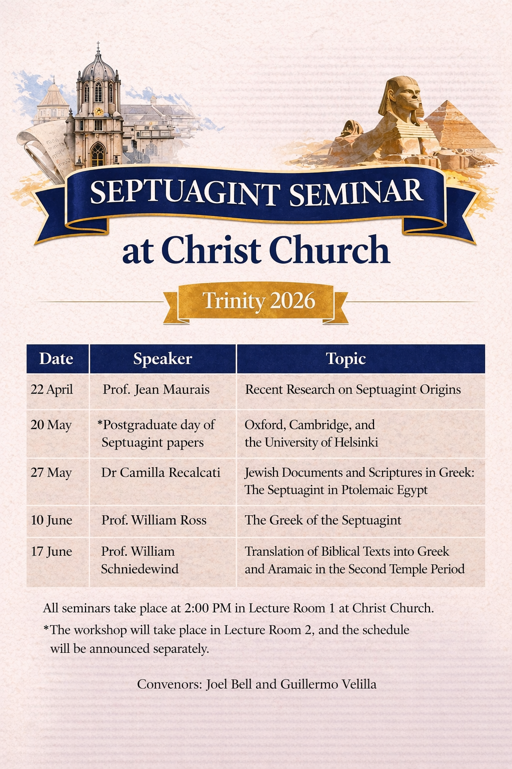 This Wednesday, 22 April, the Oxford Septuagint Seminar at Christ Church will host Jean Maurais (Faculté de Théologie Évangélique, Montreal), Professor of Old Testament and Vice-Dean, and Adjunct Professor at McGill University.
